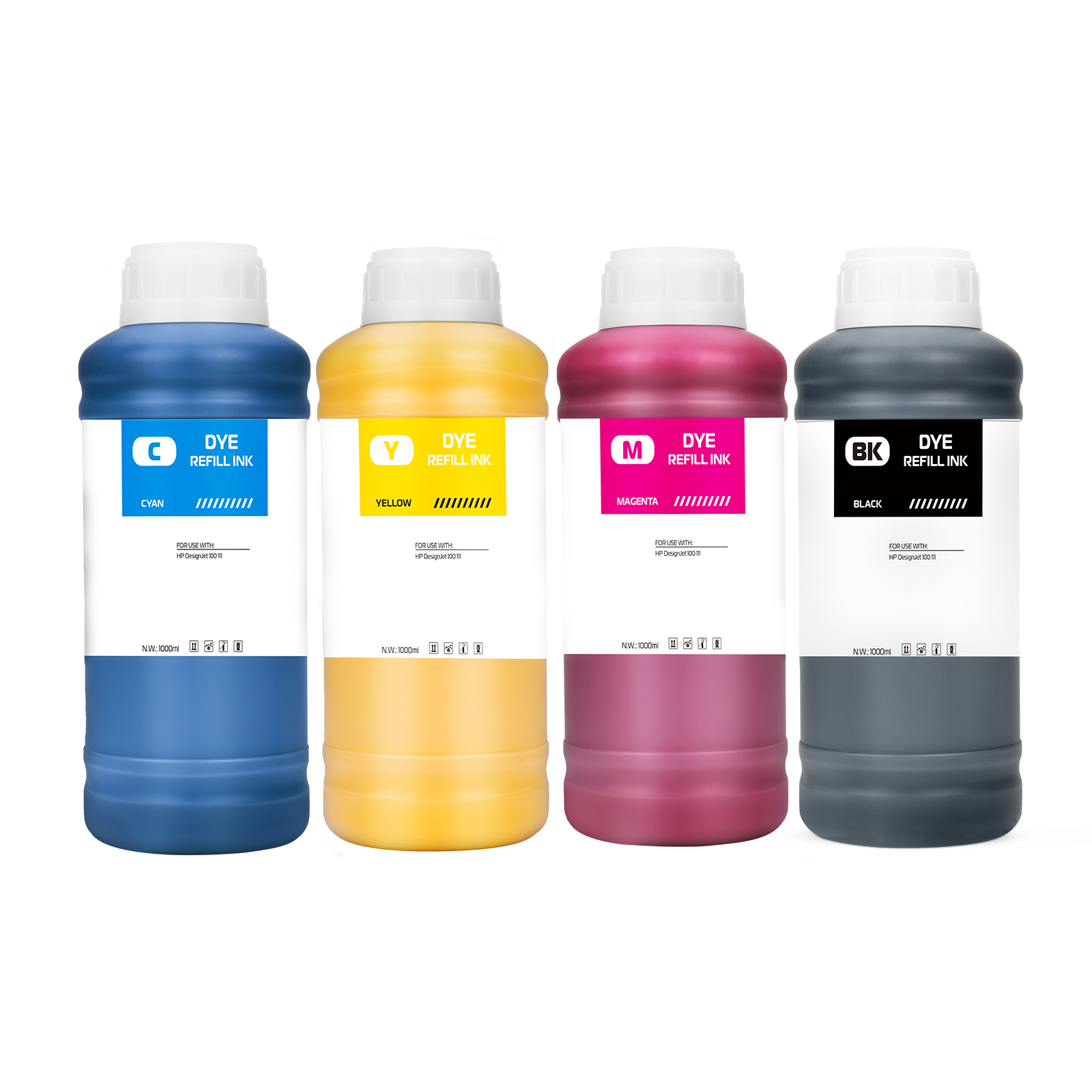 | Ink Type: Dye Ink Volume: 1L/bottle, other volume packaging optional. Colors: BK C M Y Suitable Printers: HP DesignJet 100 111 |